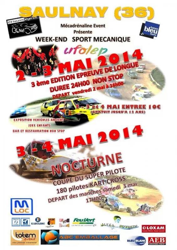 <br>Et pour la première fois une nocturne spécial kart cross du 3 au 4 mai Pour tout renseignement et inscription mecadrenalinevent@orange.fr ou 0254269239 Bon début de championnat a tous