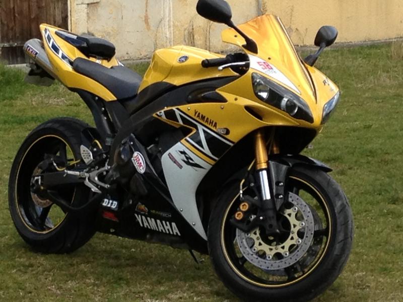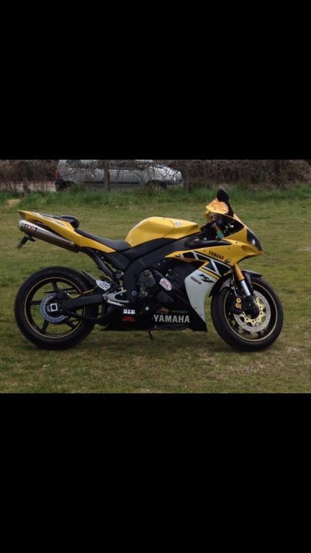 Vend r1 de 2006 avec 33500 kms évolutif,c'est une série limitée 50ème anniversaire à l'effigie de Kenny Roberts.La moto a pas mal d'option comme la double sortie ixil en titane,le capot de selle,la bulle jaune iridium,les clignotants rizoma,le support de plaque rizoma,les caches carters en carbone,les durites avia jaune,l'indicateur de rapport engagée et d'une alarme anti démarrage avec les 2 bips. Je possède les 3 clefs ainsi que la rouge. La révision a été faite à 30000km,la batterie a 1 mois, les pneus sont en bon état ainsi que les plaquettes. Je la vend 6600 euros échange possible contre sportive ou rodsters équivalent pour plus de renseignement téléphonent au 0670793583 (rajout d'argent de ma part possible dans la limite du raisonnable) Moto équivalente gsxr,cbr,zx-10,ktm,b king ,cb1000r,s1000rr,rsv4
