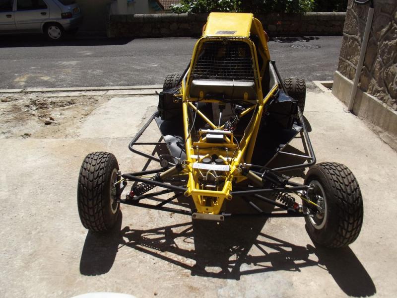 chassis numéroté de 2012, passeport ufolep et ffsa, marche arrière, pont alu, intérieur et tableau de bord carbone/kevlar, amortisseurs 3 voies, etc... Vendu avec un jeu de triangles avants, un jeu de bras arrières, embrayage, cardans, nez de rechanges. Prêt à rouler, entièrement révisé.