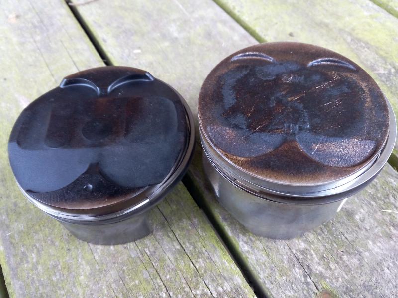 <br>avec segment et axe court. Photo d'un piston face a un piston origine moulé.
