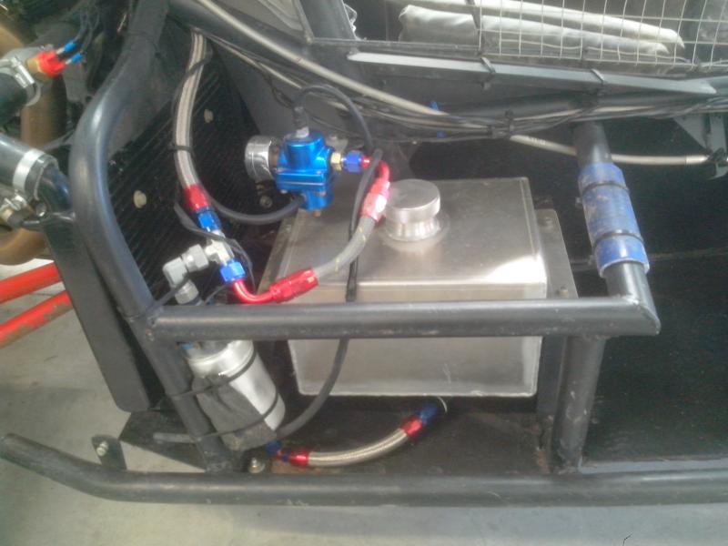 Vend système essence complet haute pression pour injection. Le lot comprend reservoir alu, pompe bosh, filtre, régulateur de pression toute est monter en raccord dash avec durite HP 400bar. Comme neuf seulement 6 courses valeur neuve du lot environ 600€. A vendre 350€!