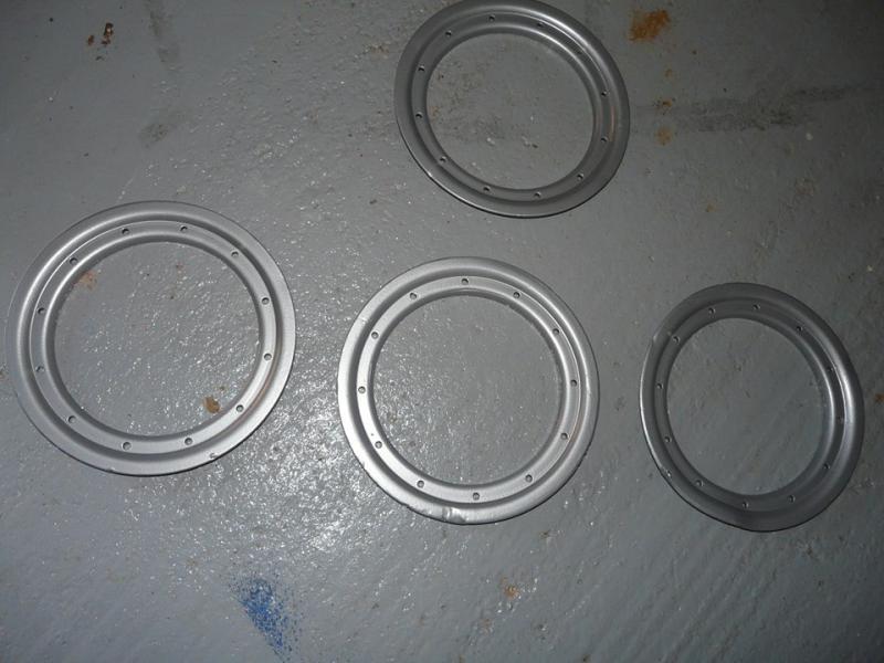 5 jantes arriére (4 sur photos mais identiques) entraxe 2cv peinte epoxy il y a 1 semaine roulé 3 tours niquel avec pneus ou sans pneus 40% usure