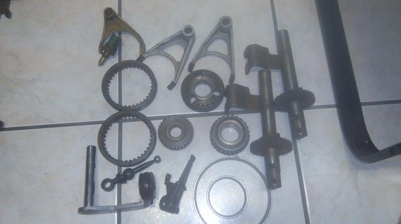<br> Tout ce qu'il y a en photo plus des ressort de verrouillages des billes de verouillage neuf des vis neuves commande de marche ar commande de boite ressort de synchros pour toutes vitesses