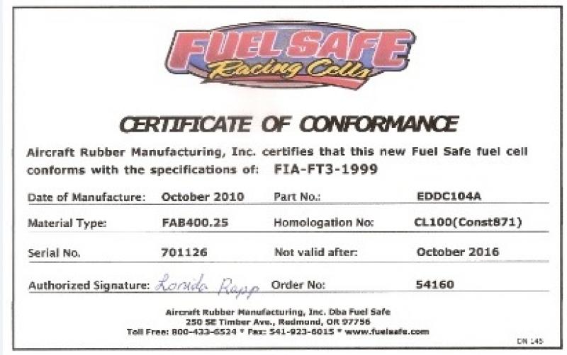 Vends réservoir souple Fuel Safe avec date de validité d'octobre 2015 ou 2016 suivant interprétation (certificat de conformité jusqu'à 2016 mais date de début en 2010).