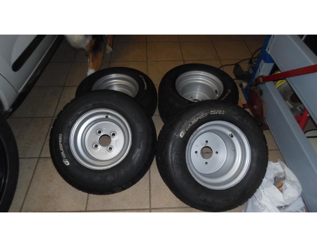 Vds 4 roues neuves ( 2 AV + 2 AR )pour cross-car + 2 chambres à air ( AV et AR)
