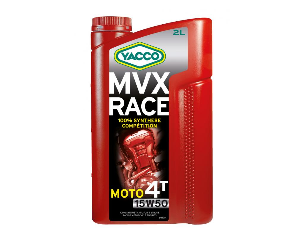 ’huile Yacco MVX Race 4T - 15W50 est une huile 100% synthèse 4T de viscosité 15W50 réservée à la compétition moto.