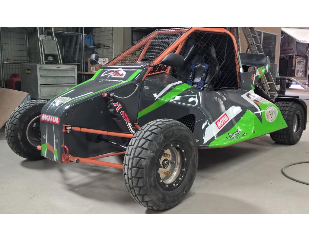 <br>- Train Arrière 25CD4S double-triangulations, rotules compétition haute qualité et kit réglage sans démontage, pivots mécano-soudés, moyeux acier VW