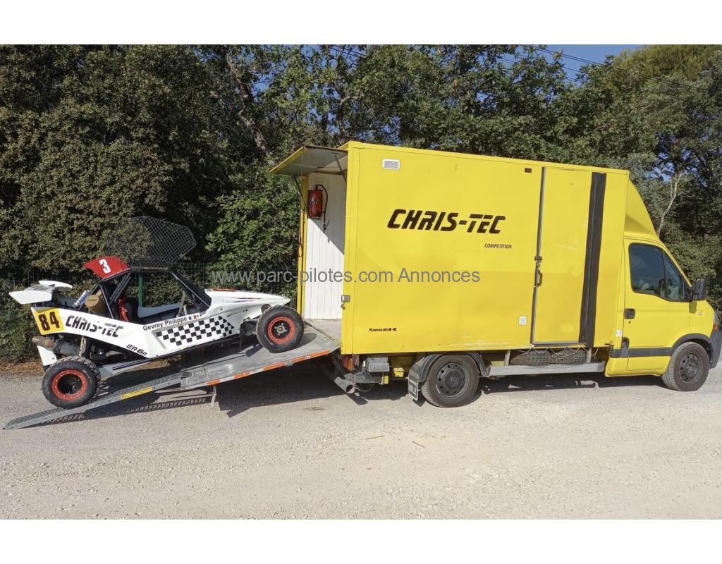 <br>Camion avec attelage et hayon + rampes.