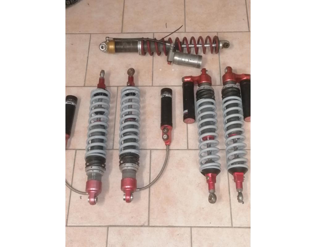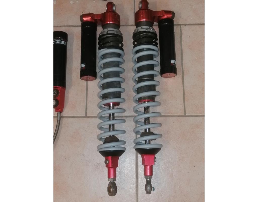A vendre amortisseurs BOS Cr40 3 voies avec butée hydraulique. Les avants mesures 550 mm avec bonbonne sur la tête d'amortisseur et les arrière font 560mm avec bonbonne séparé. Je donne avec un amortisseur Dynam pour faire un secours pour l'arrière (à réviser).
