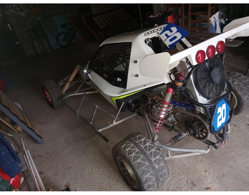 Urgent !!!!! vend kart cross stinger fb racing 500 cb passeport ufolep 2018 amortisseur arrière 3 voies elka amortisseur av 3 voies de type olhins AVG cassé a la fixation voir photo donc a réparer ou a remplacer 2 Nevada fourni avec frein révisé moteur préparer stage 2 arbre à cames retaillé carbu CDI de 900 pistons forgé bas moteur équilibré collecteur échappement sur mesure reste a mettre a jour baquet harnais et 2 soufflet de transmission a remplacé en plus avec 2 roues de secours av barre anticastrement 3 triangle ar un capot et barre châssis arrière actuellement réglé pour pilote maxi 1m80 80 kilos cellule basse donc attention !!!! Ufolep autocross poursuite sur terre loisirs circuit crosscar slalom circuit ou échange contre sportive ou ancienne a voir sans rajout d argent 4800 ferme