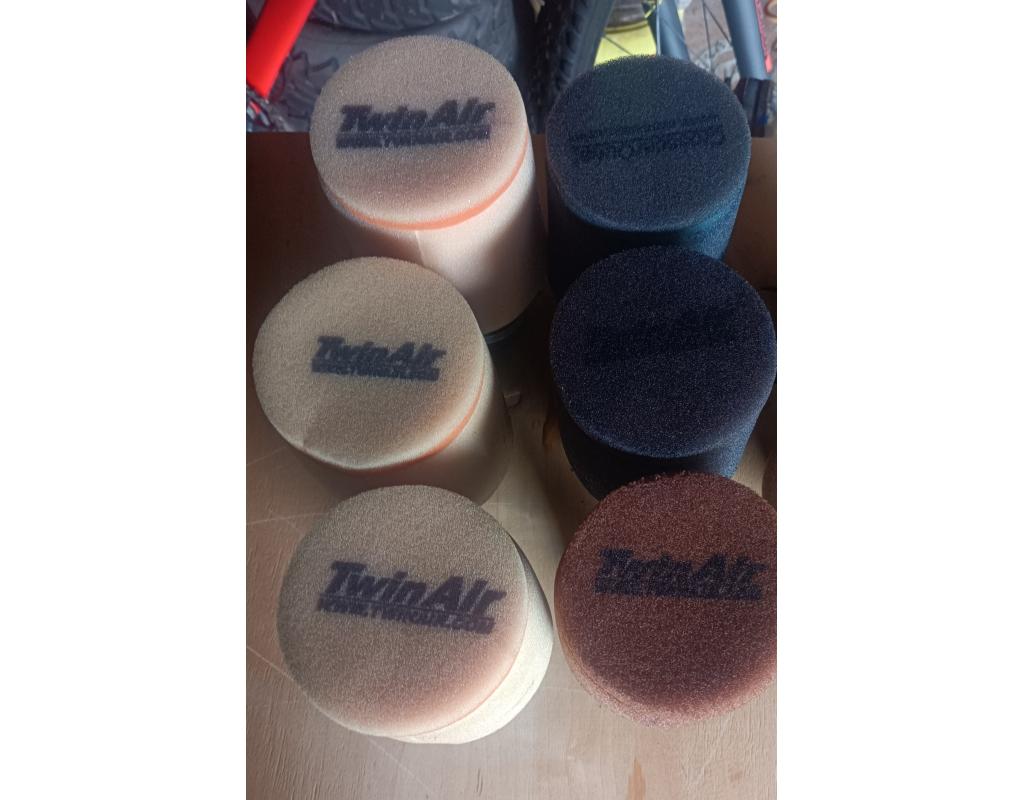 Lot de filtre twinair réf 158712 3 filtres neuf + 2 récents + 3 occasions offert 1 surfiltre offert Diamètre du manchon 50 mms Diamètre du filtre 100 mms Hauteur du filtre 115 mms Le lot à 65 euros. 1 bidon neuf de 1 L huile de lubrification twinair et 1 bombe 500 ml neuve également à vendre également . Envoi possible à votre charge ou livraison possible à St Vincent des landes .