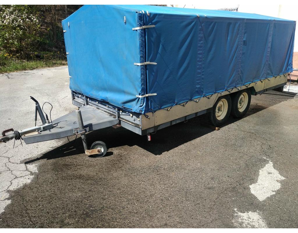 rangement sur l'avant de la remorque (étagères) dimensions utiles du plateau : 4.50 m de longueur hors tout (4.20 m avec les étagères de rangement), 1.90 m de largeur hors tout (1.60 m entre les passages de roues), hauteur 1.50 m au milieu. possibilité de charger deux sprint car ou deux quad visible dans les hautes alpes