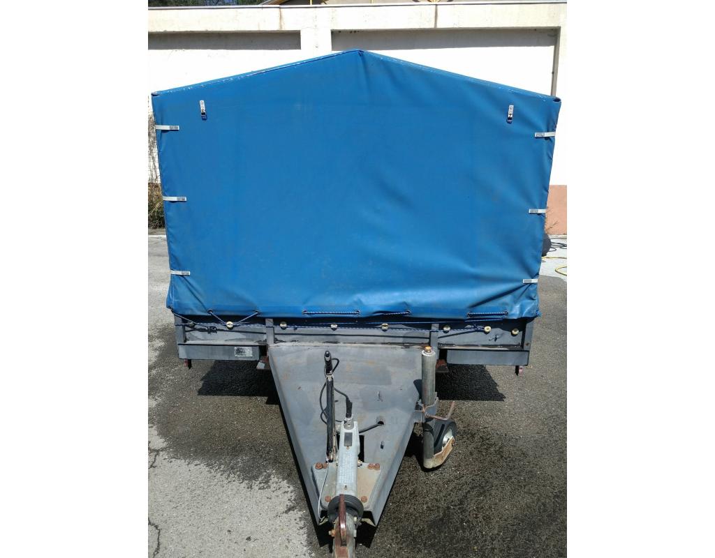 bâche très solide type poids lourd qui s'ouvre de tout les cotés possibilité de faire une petite extension de votre stand avec la bâche