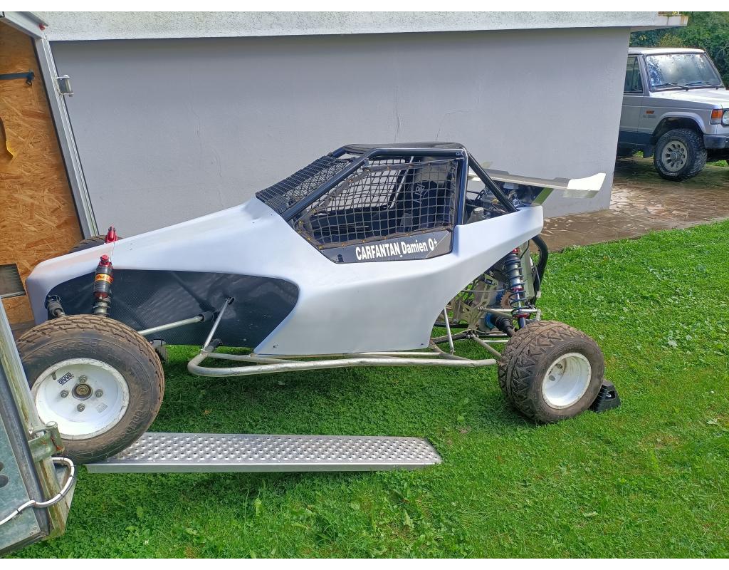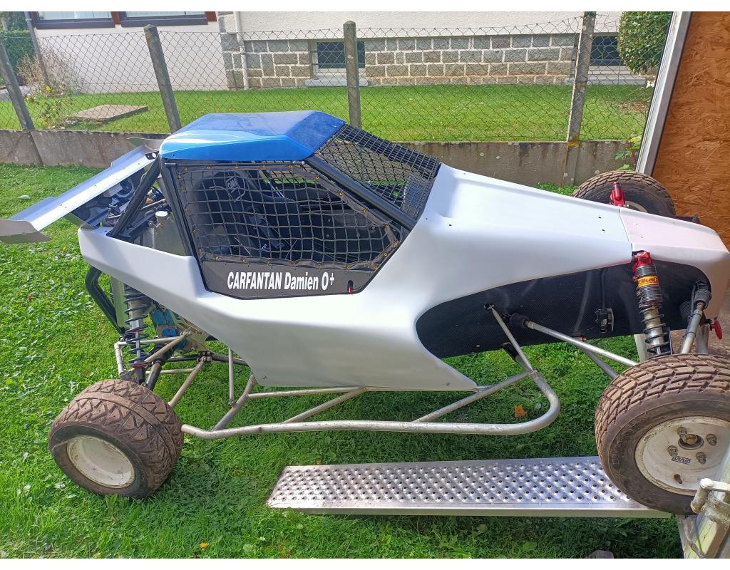 Amortisseurs Elka 3 voies révisés 0 courses, transmissions renforcées neuves 0 courses, pont inverseur rito avec joints neufs, roulements de roues neufs, plaquettes racing neuves ( freinage brembo sur les quatres roues), moyeu de volant lifeline neuf, siège et harnais neuf valide 2027, radiateur neuf, peinture châssis epoxy neuve, carrosserie en apprêt.