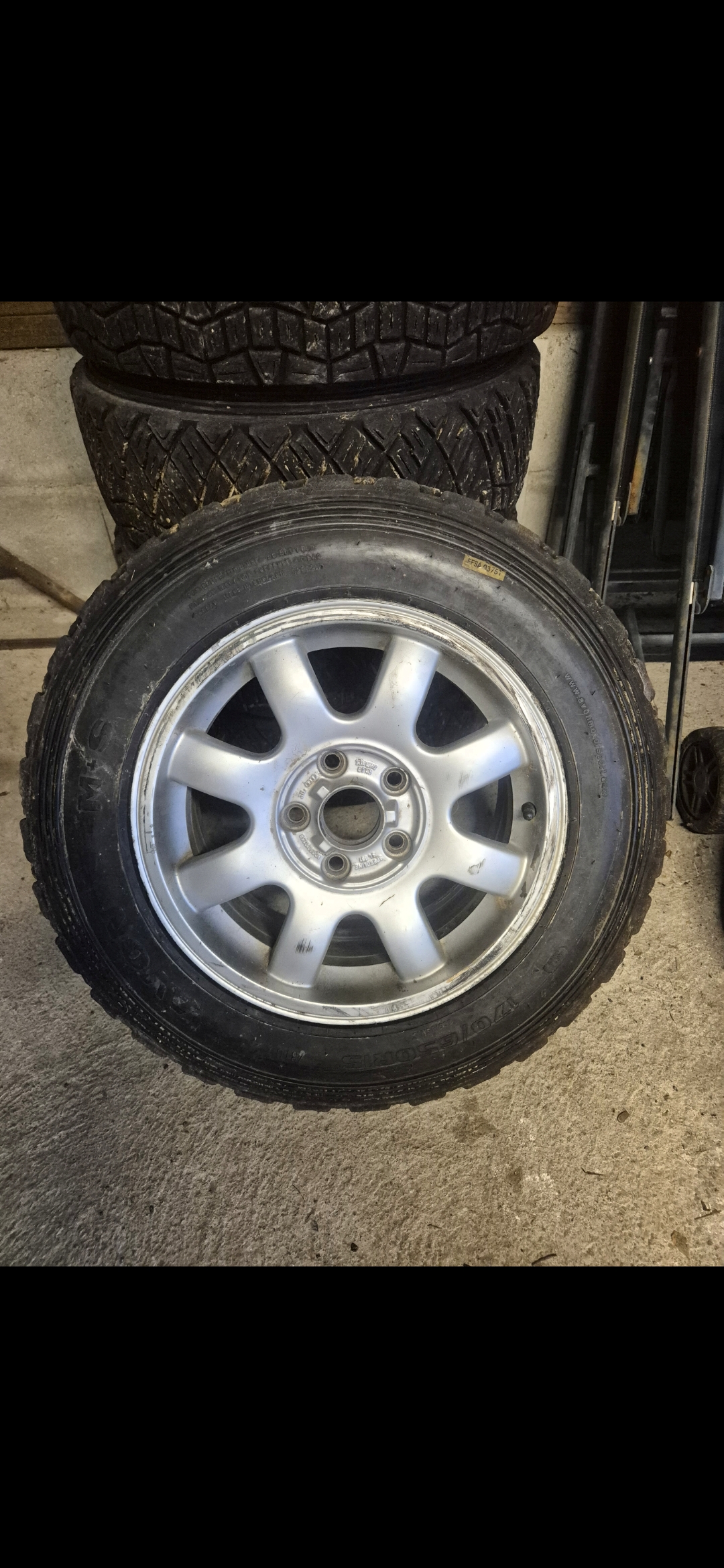 Vends 5 jantes alu 5 trous, audi avec pneus. 125 euros le lot