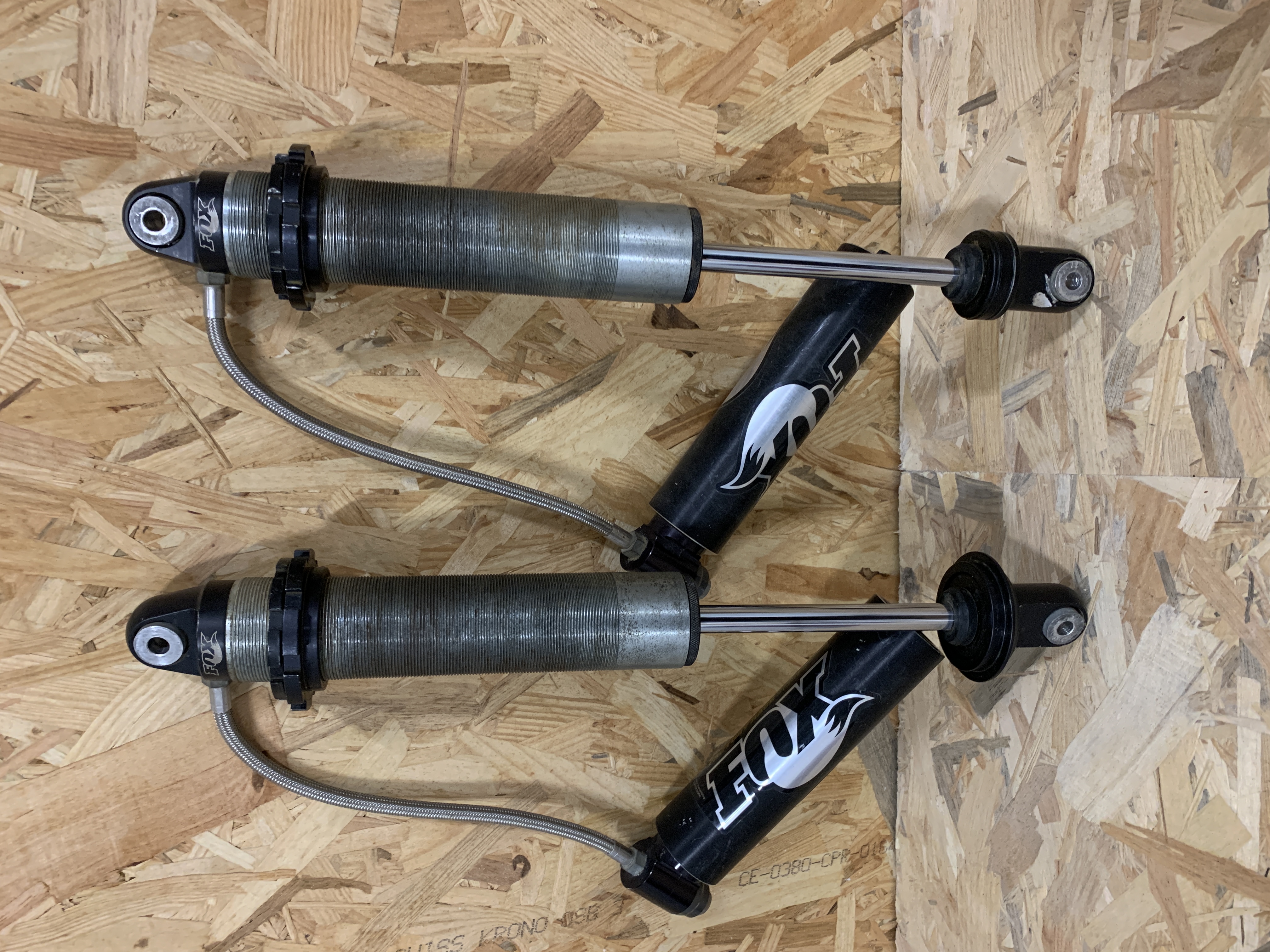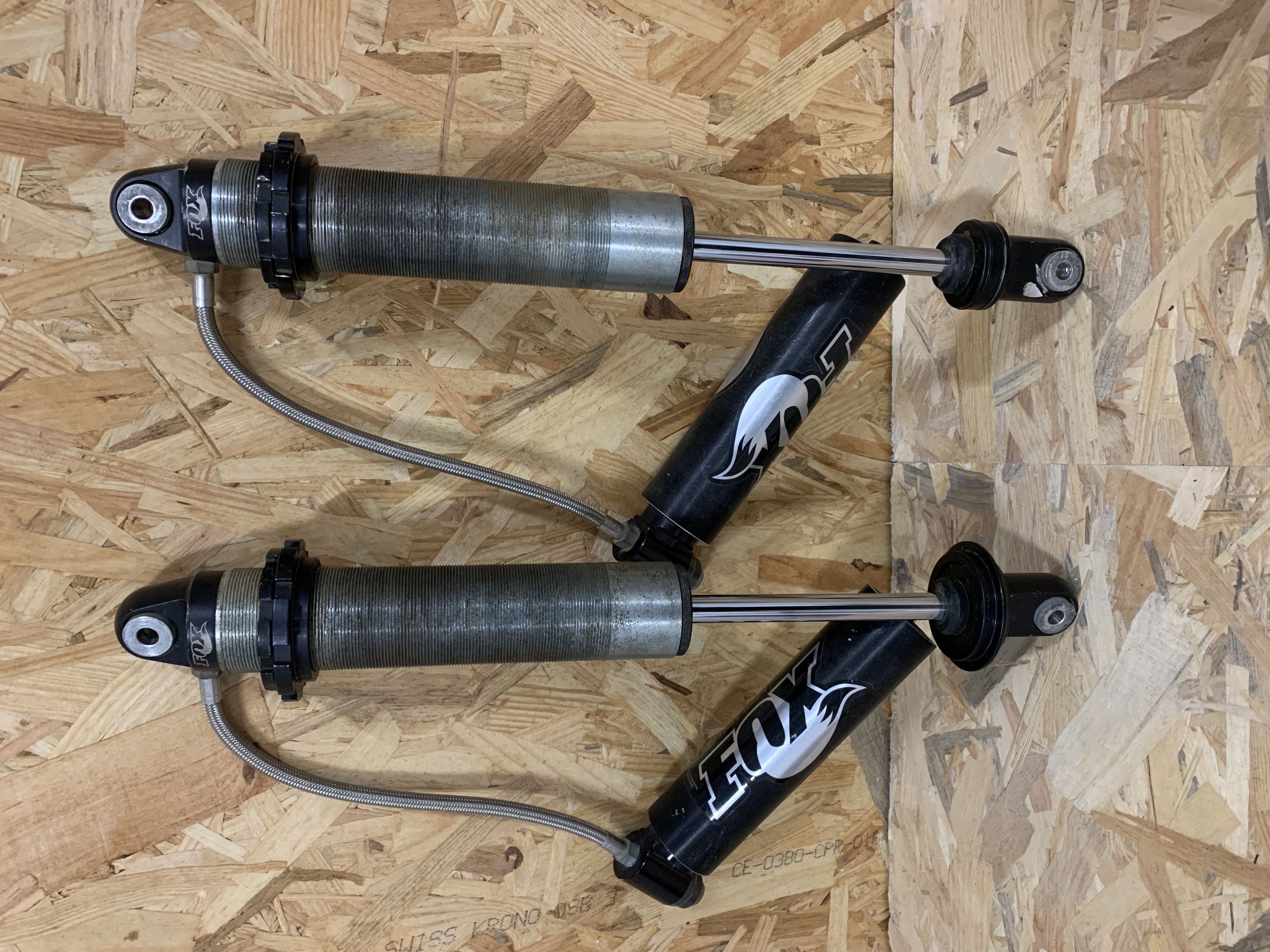 Vends 2 amortisseurs FOX. Ils étaient montés à l'arrière sur un châssis T3F d'Autocross, ils ont 7/8 courses. Bon état. Entraxe: 495 mm . Course: 150 mm . 800 €.
